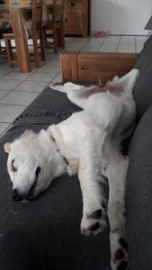 D'après sa famille, c'est "un amour de chien" ! Cela me fait très plaisir de le savoir, et je suis ravie de la savoir dans cette famille ! Merci pour toutes ces nouvelles et ces photos ! Je n'ai pas pu enregistrer et publier malheureusement deux vidéos très sympathiques...