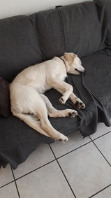 Comme beaucoup de petits Princes d'Or, elle aime le confort (le canapé, ça ira...) et se sent à l'aise chez elle (les quatre pattes en l'air !)