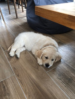 Rebelle (Mademoiselle Jaune) a trois mois. C'est une petite chienne qui a vite bien trouvé sa place dans sa famille. Voici le témoignage très touchant de sa famille qui a bien compris comment fonctionner avec un golden, qui est certes très têtu mais qui apporte tellement d'affection...